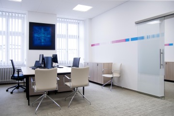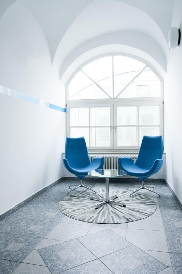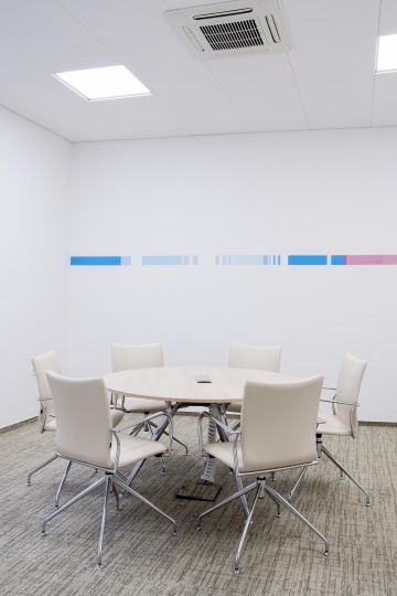Pomocí akustických křesel Badminton od společnosti ACTIU a barevných lamel byly vytvořeny diskrétní zóny v rámci openspace kanceláří. Nábytek ACTIU byl použit v celém prostoru poboček a také díky němu se podařilo dosáhnout příjemné rovnováhy mezi designem, komfortem a funkčností. Krom křesel byly použity také stoly řady LONGO a PRISMA, kancelářské židle STAY a paravány SPLIT. Na podlahu byl položen koberec společnosti VOXFLOR – konkrétně řady Bordeaux a Daintree a celý design byl doladěn také pomocí lacobelových stěn, smart walls, množství atypických prvků a zeleně.