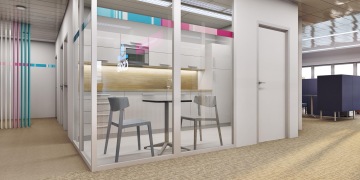 Dnes už se navrhuje open space menšího rozsahu s prvky, které prostor opticky i funkčně rozdělují. Integrujeme řešení, které často zmiňovaná negativa, jako je hluk a nemožnost se soustředit, odstraňují. Je mnoho způsobů, jak vytvořit příjemný openspace, používají se akustické panely, telefonní budky, relaxační zóny, zeleň nebo neformální prostory, kde se dají projednávat i osobní věci a nikoho tím nerušíte a zároveň sami nejste rušeni.