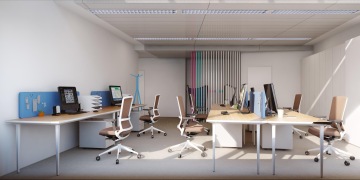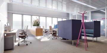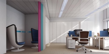 Jedním z možná nepříliš populárních prostorů pro zaměstnance je open space, otevřené kanceláře, kde jsou zaměstnanci od sebe odděleni nejčastěji jen vyšší přepážkou. Můžete jim vy, z pozice architekta, prostor nějak zpříjemnit?