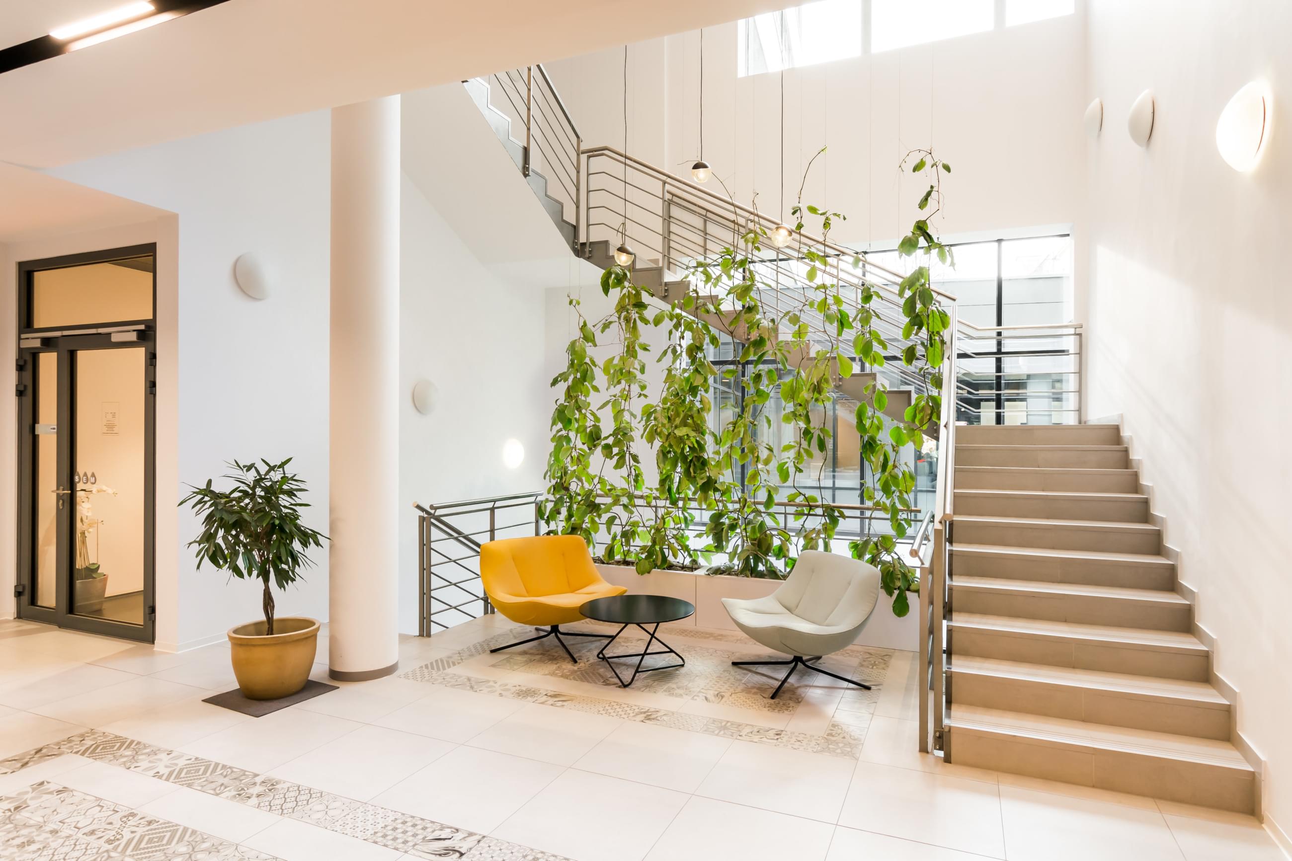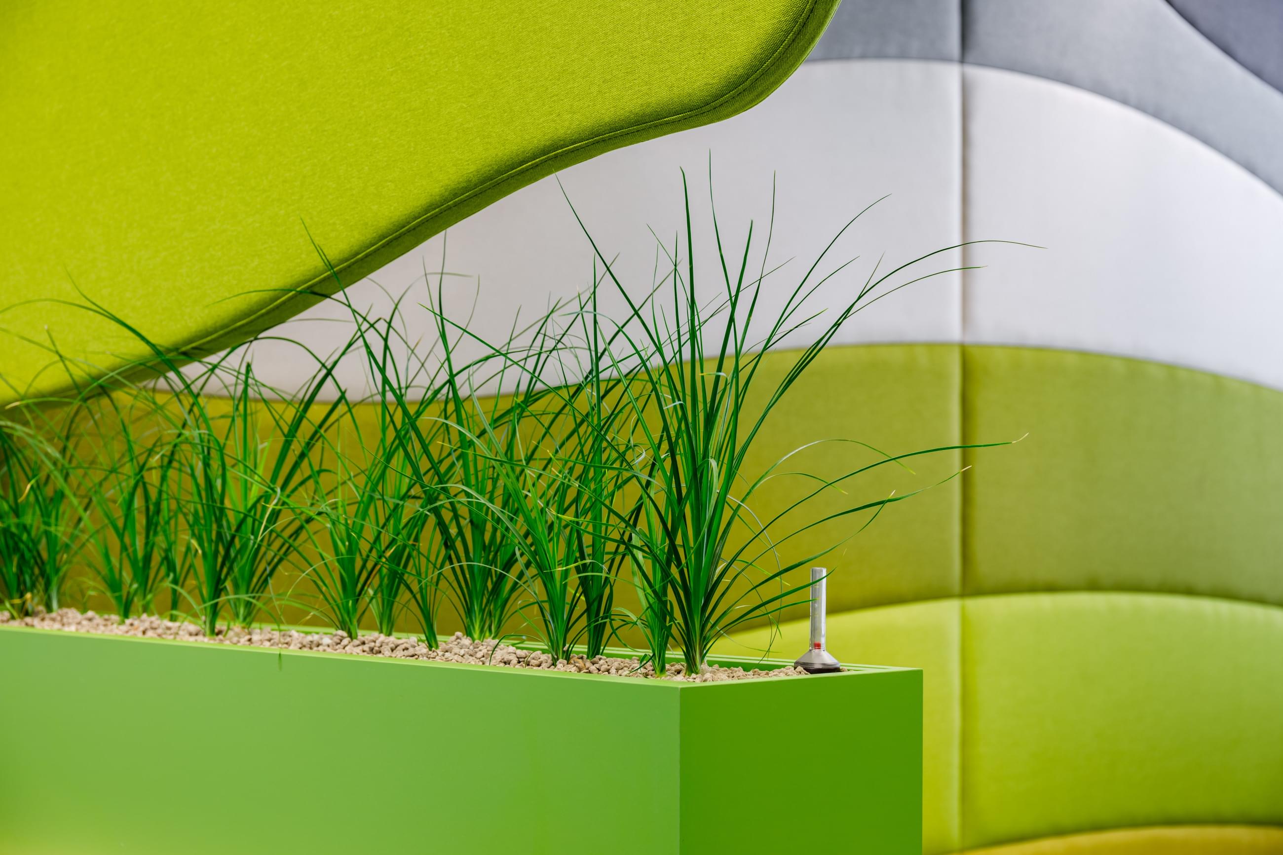Living elements in the workplace help boost employee morale and significantly reduce noise in the office interior. See what other benefits come from plants in the office.