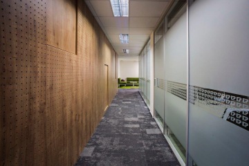 Emphasis was also placed on the office of the CEO. The style of the interior was influenced by the latest trends. The main requests of our client were: use of quality carpets, the creation of a highly representative space, and enough meeting rooms with excellent acoustic properties for maximum comfort.