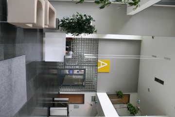 The main challenge was to combine limited budget with the best esthetic result. A lot of focus was put into work with details, which were not expensive, however helped to brighten up the whole area. For example, a green wall made of plants was created for reception D. Another request from the investor was to clearly display letter of the respective building in each reception as well as in corporate color of the building here. The result looks very elegant and the colors nicely complement the space.