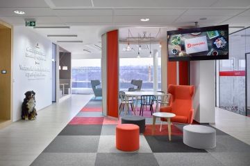 „Žádný den není stejný a každému z nás se stává, že někdy nepřijde do práce dobře naladěn a chce být spíše sám. Stejně tak se podobné zóny hodí pro situace, kdy se potřebujete soustředit,“ popisuje Erika Bohatá, architektka, která prostor navrhla ve spolupráci s Monikou Radovou. Plnění těchto potřeb se projevuje i v použitém nábytku. Třeba pohovka Profim October jako vyšší sezení vytváří intimní zónu pro interní schůzku