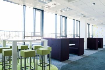Do relax zón bylo použito akustické sezení od společnosti Metalmobil a Softline, opět v příjemných barvách, doplněné zajímavými tapetami a potisky z návrhu architekta Jana Andrleho. Luxusní zasedací místnosti byly vybaveny nábytkem řady ARKITEK, nejvyšší řadou nábytku od společnosti ACTIU. Velmi zajímavým doplňkem jsou také akustické panely připevněné na strop v rámci openspace, které na zakázku vytvořila společnost SilentLab.